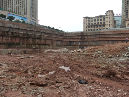 南宁市龙光世纪工程位于南宁市东盟商务区中柬路与中菲路交叉路口的南侧地块(即利海亚洲国际小区东侧、盛天华府小区南侧),建筑物由塔楼A(1#塔楼)、塔楼B(2#塔楼)、裙楼及纯地下室构成,建筑物地基基础设计塔楼A和塔楼B拟采用筏板基础或桩基础、裙楼及纯地下室拟采用柱下独立基础,以中风化粉砂岩⑤为基础持力层。基坑边坡采用排桩+锚索支护,基坑底面开挖标高约83.5~86.5m。本工程为属重要的公共建筑,破坏后果很严重、工程重要性等级为一级;场地地形地貌较简单,地下水对基础施工有不利影响,属二级场地(中等复杂场地);地基岩土种类较多,不均匀,性质变化较大,地基等级为二级(中等复杂地基),综合评价本次岩土工程勘察等级为甲级。本项目共完成钻孔93个,钻探总进尺2999.77m。