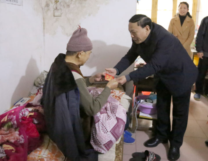 在85岁退休困难户陈兴武家中,唐善茂亲切地与陈老唠家常,并详细询问陈老的身体状况、现在由谁来照料、目前还有什么需要帮助解决的困难等问题。唐善茂在祝愿陈老健康长寿并提前给他送上新春祝福的同时,还叮嘱有关负责人要根据实际情况,进一步帮助解决生活困难,把党的温暖送到困难群众的心坎上。