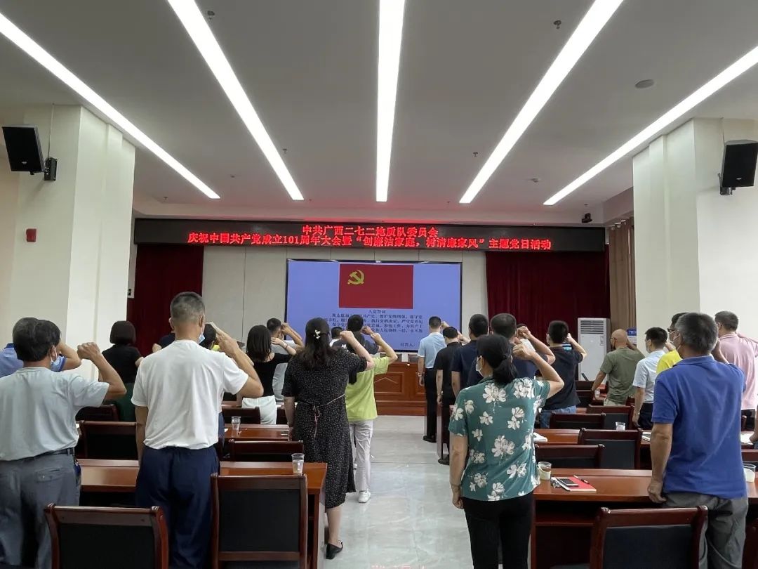 为庆祝中国共产党成立101周年,我队(院)7月1日上午举办了庆祝建党101周年大会暨“创廉洁家庭,树清廉家风”主题党日活动,队领导、13个在职党支部和4个离退休党支部的委员参加了本次大会。