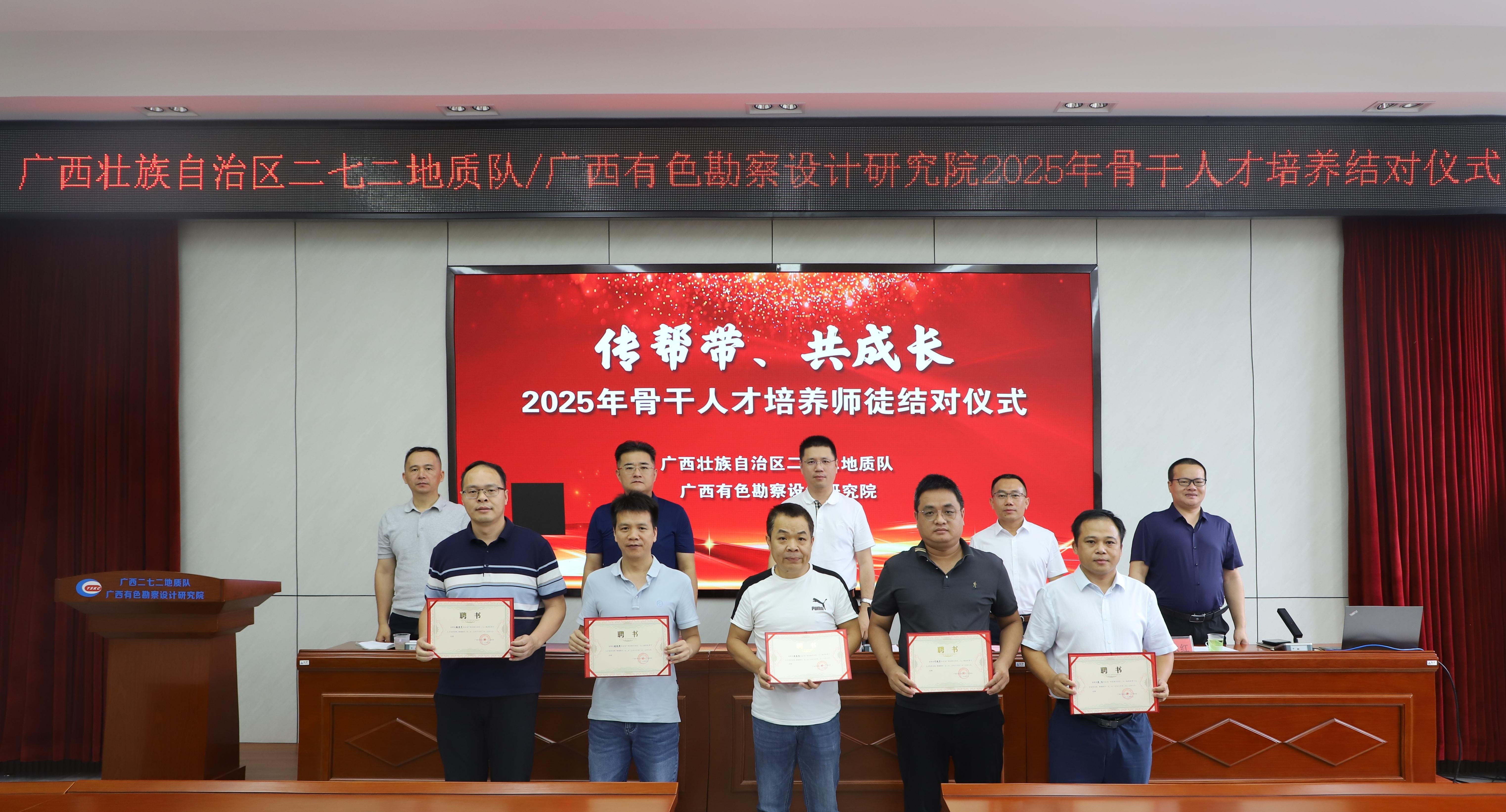 根据《广西二七二地质队骨干人才选拔培养管理办法》,“骨干人才”从本队市场经营开拓、科技创新、业务管理、教书育人等方面推荐认定能为单位在某一方面发挥重要作用独当一面的高素质、高技能人才。此次骨干培养结对,按人才类别划分为 “经营类骨干人才”“技术创新类骨干人才”“管理类骨干人才”,共分39组。培养工作实行导师制,每名骨干人才配备 1 名导师,从思想政治教育、业务能力培训、实践经验锻炼、职业发展规划等多个维度系统锤炼人才素质。同时,单位将从参政议政、职业发展等方面为骨干人才构建完善的激励环境,旨在打造具有广西二七二地质队特色的新时代人才集聚高地。