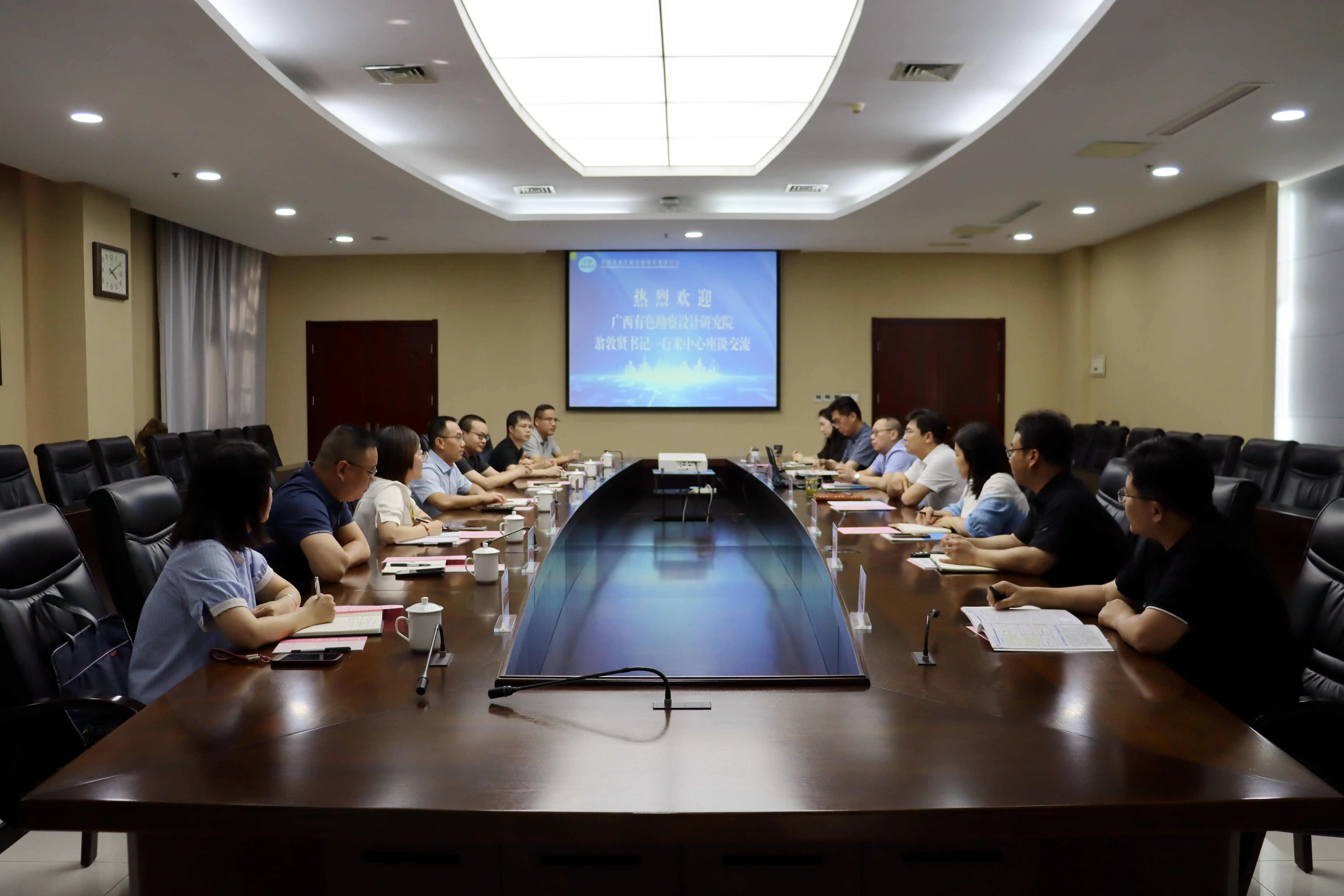 中心党支部书记、主任杨学明对我院一行的到来表示热烈欢迎,并介绍了中心四个专业板块发展情况。他表示,中心的历史悠久,在工程勘察、测绘地理信息、国土空间规划、地质灾害防治等方面成果丰硕,为广西的地质工作作出重要贡献,希望双方充分发挥技术优势、资源优势,在环境地质、海洋地质、农业地质等方面深化战略协作,共同拓展合作领域,实现技术共研、业务共联、平台共建、人才共育、规划共绘、党建共融。